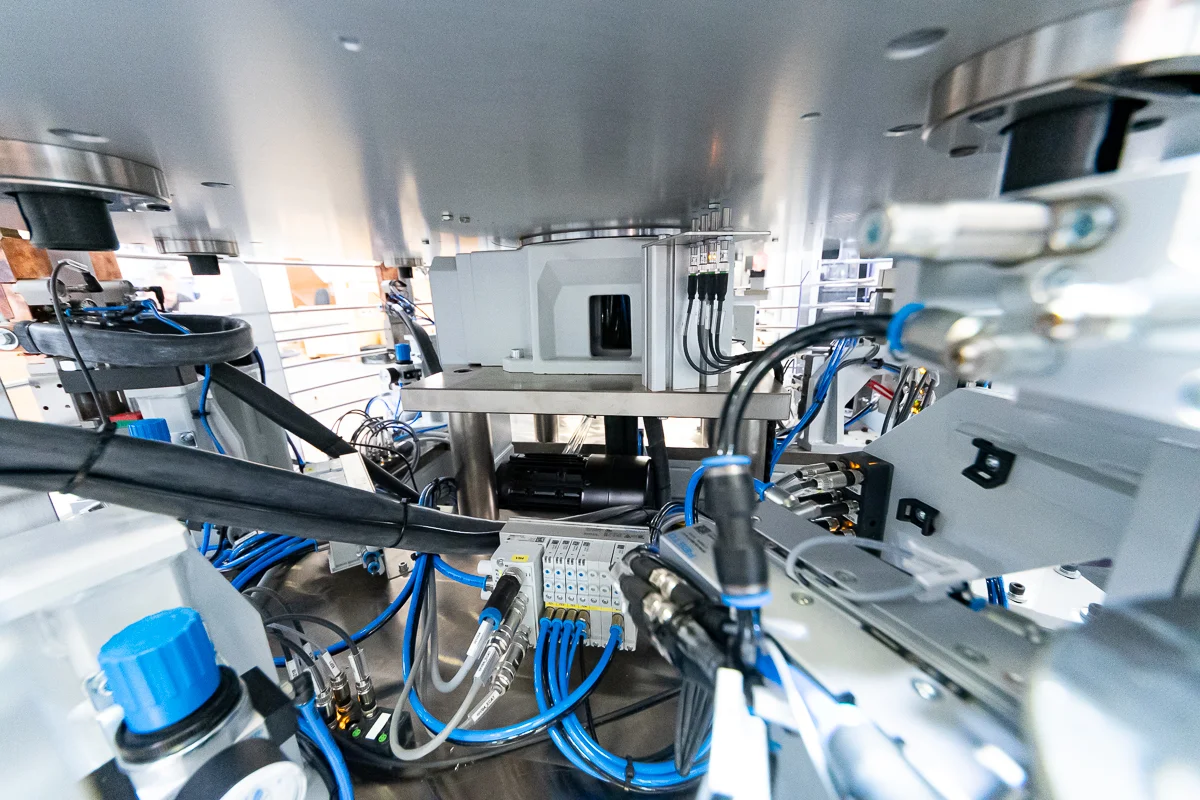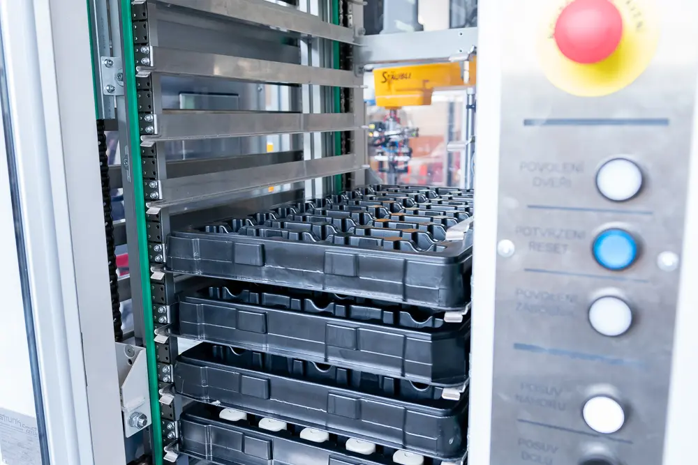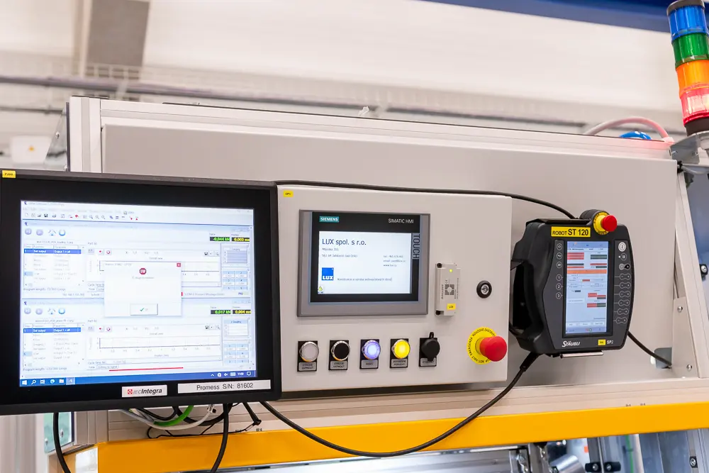 Linka se skládá ze samostatných stanic, každá s vlastním PLC Siemens. Tato zařízení jsou srdcem celého procesu, zajišťují synchronizaci všech kroků a umožňují maximální kontrolu nad výrobou.
